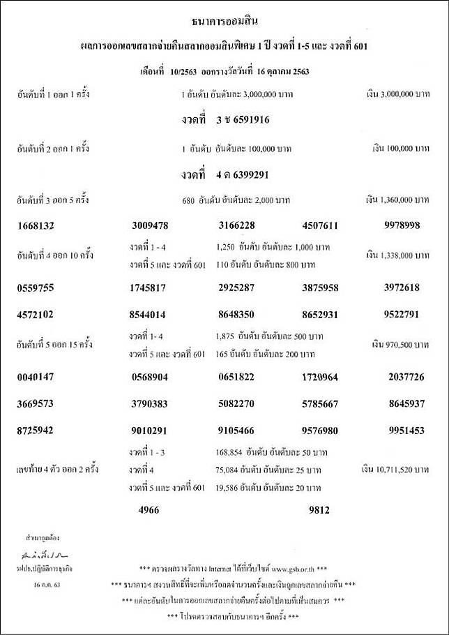 ผลสลากออมสินพิเศษ 3 ปี วันที่ 16 มกราคม 2563.